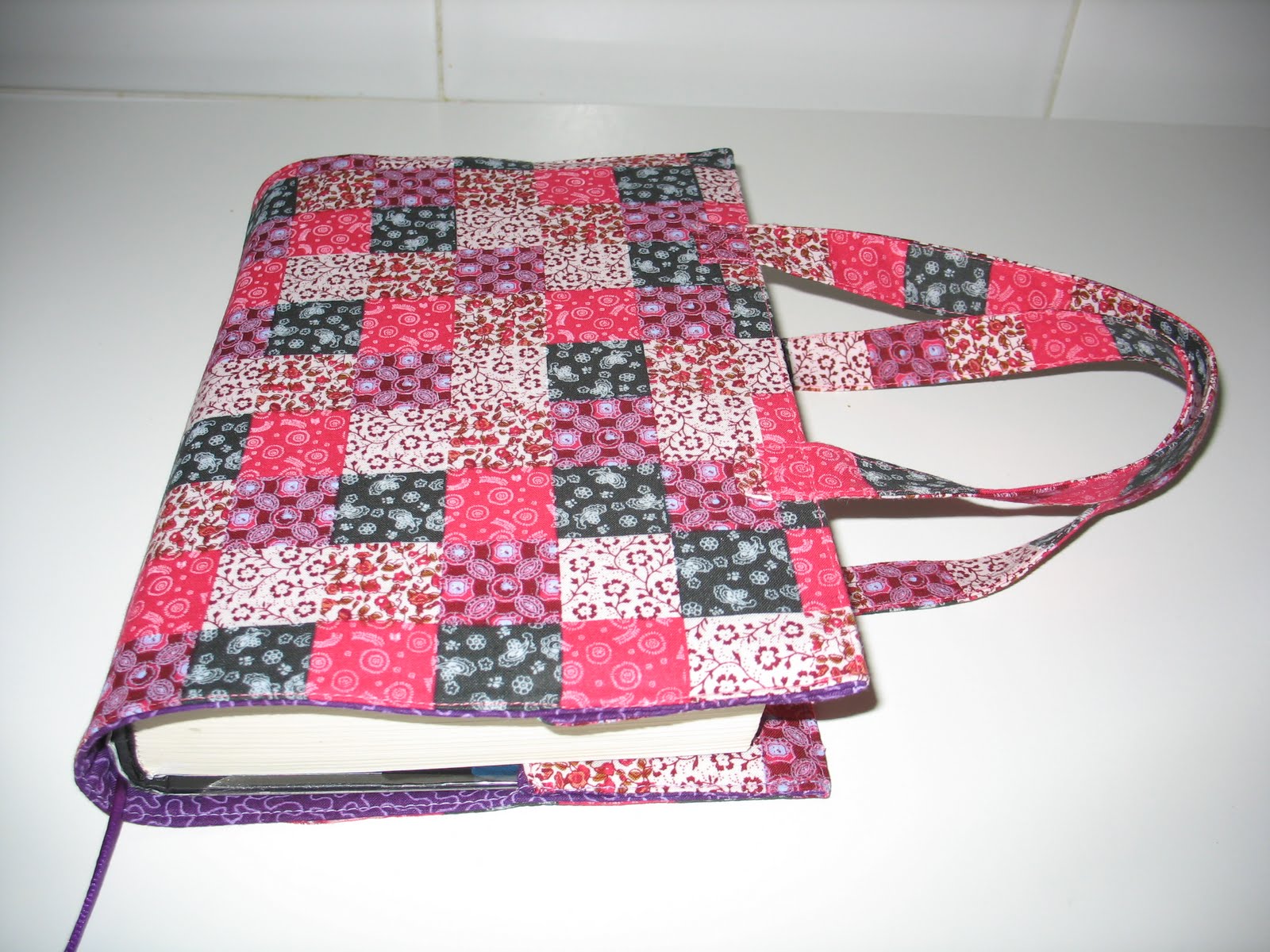 ¿Qué os parece mi funda de libro? Yo estoy enamorada de ella. Es super cómoda y práctica; viene muy bien para esos libros que son un pelín grandes y gruesos y que no te entran en bolso. Con esta funda con asas los llevas la mar de bien y no sufren nada. Las telas que he utilizado son las que me sobraron después de hacer los cuencos de cartonaje. La de cuadritos, imitando a patchwork, me encanta. Espero que os guste tanto como a mí.
